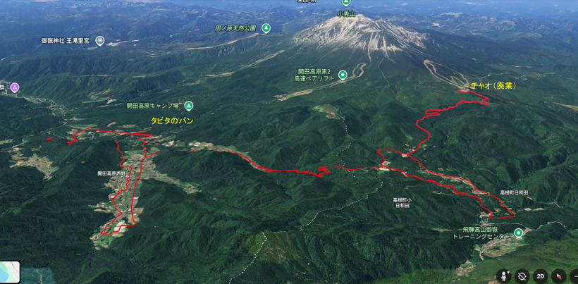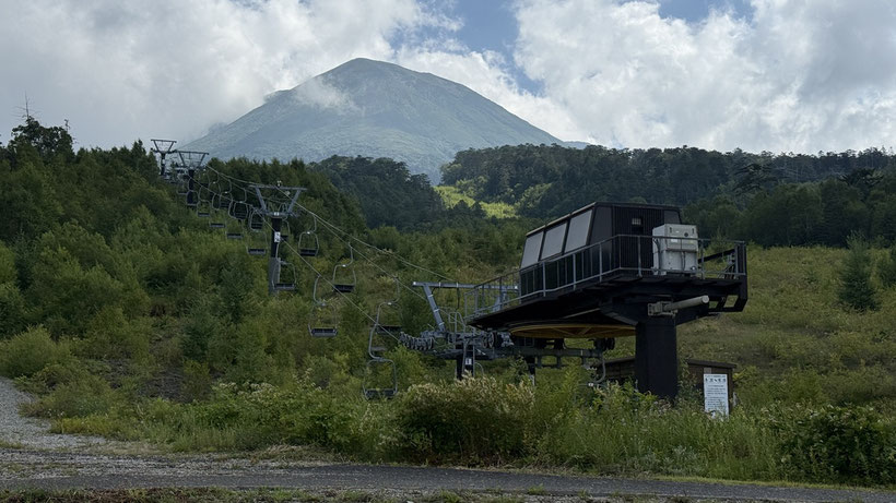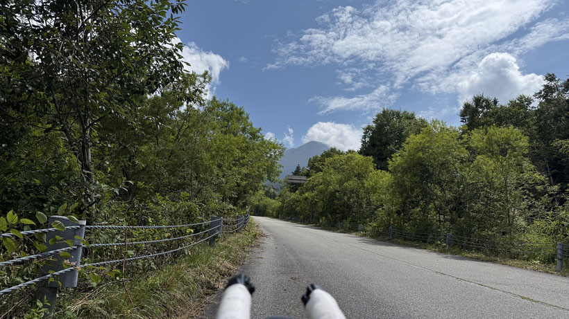 まずはここから自転車で一度麓まで下り、麓を周回して帰ってきます。
