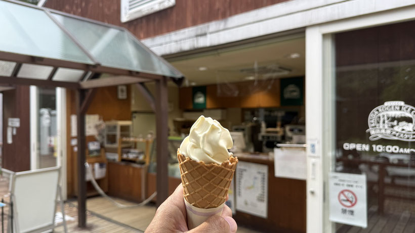トウモロコシが手に入らないのなら、せめてトウモロコシソフトを食べようと開田高原アイスクリームに寄ります。